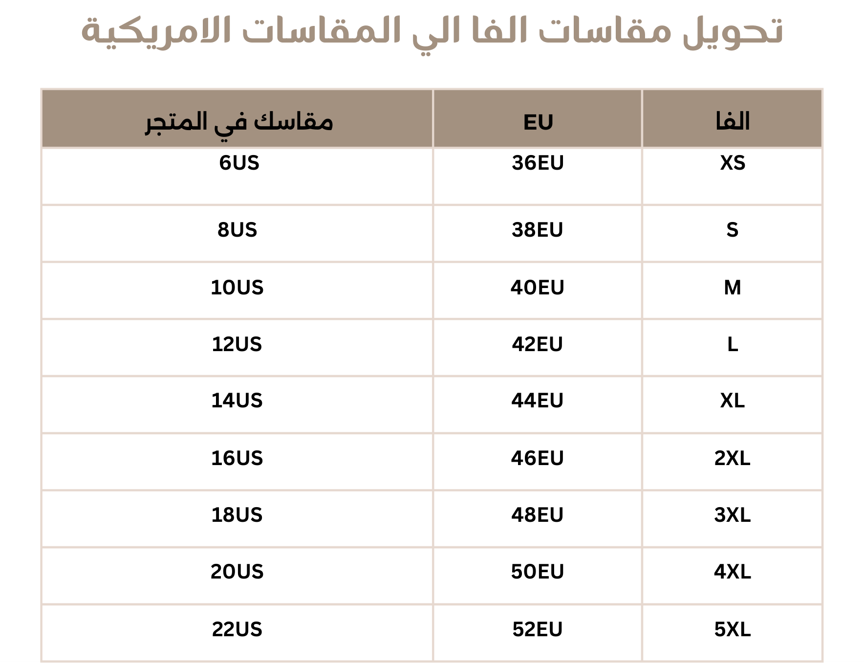 جميع مقاسات الفساتين في الموقع هي حسب المقاسات الامريكية